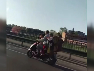 Yavuz YILMAZ/İNEGÖL (Bursa), (DHA)- BURSA’nın İnegöl ilçesinde 4’ü çocuk 6 kişinin motosikletle tehlikeli yolculuğu cep telefonuyla görüntülendi.İnegöl-Bursa kara yolunda 4’ü çocuk, 6 kişinin motosikletle yolculuk yaptığı anlar, bir sürücü tarafından cep telefonuyla kayda alındı. Görüntülerde, çocuklardan 2’sinin motosikleti kullanan kişinin önünde, birinin kadının kucağında, diğerinin de en arkada oturduğu görüldü. (DHA)