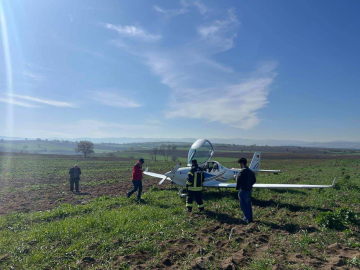 Eğitim uçağı tarlaya zorunlu iniş yaptı