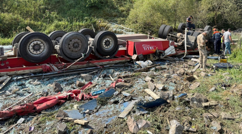 ERZURUM, (DHA)- ERZURUM'un Şenkaya ilçesinde İran plakalı TIR devrildi. Kazada ters dönen aracın şoförü hayatını kaybetti. Kaza, sabah saatlerinde Şenkaya ilçesi kırsal Akşar Mahallesi mevkisinde meydana geldi. İran plakalı TIR, kontrolden çıkarak yol kenarına devrildi. Ters dönen araçtaki kimliği henüz belirlenemeyen şoför, hayatını kaybetti. Cansız beden Şenkaya Devlet Hastanesi morguna kaldırılırken, kaza ile ilgili soruşturma başlatıldı. (DHA)