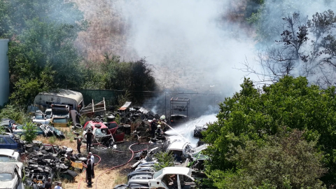 Yiğithan HÜYÜK- Hüseyin SEZGİN/BURSA, (DHA)- BURSA'da, hurda araç deposunda çıkan yangın, itfaiye ekiplerinin 1 saatlik müdahalesiyle söndürüldü.Nilüfer ilçesi Tahtalı Mahallesi'ndeki bir hurda araç deposunda, saat 12.00 sıralarında yangın çıktı. Alevlerin yükseldiğini gören çevredekilerin ihbarı üzerine olay yerine itfaiye, polis ve sağlık ekipleri sevk edildi. Polis ekipleri çevrede güvenlik önlemi alırken, yangın, itfaiye ekiplerinin 1 saatlik müdahalesiyle söndürüldü. Yangının çıkış nedeninin belirlenmesi için inceleme başlatıldı. (DHA)