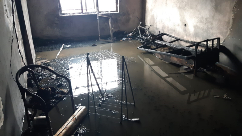 Nabi YAZICI/KÖRFEZ (Kocaeli), (DHA)- KOCAELİ’nin Körfez ilçesinde 6 katlı iş hanında yaklaşık 3 ay arayla 2’inci kez yangın çıktı. İtfaiyenin müdahalesiyle yangın söndürülürken, kundaklama şüphesi üzerine çalışma başlatan polis, yangının çıktığı dairede oturan R.D.’yi gözaltına aldı. Yangın, saat 16.30 sıralarında Körfez ilçesi Kuzey Mahallesi Ağadere Caddesi’ndeki 6 katlı iş hanında çıktı. İş hanının cadde üzerinde kalan cephesinde 5’inci kattaki daireden yükselen dumanları görenler, 112 Acil Çağrı Merkezi’ne haber verdi. İhbar üzerine bölgeye itfaiye, sağlık ve polis ekipleri sevk edildi. Yangın merdiveninden çıkarak daireye ulaşan itfaiye ekiplerinin müdahalesi sonucu yangın söndürülürken, dairede hasar meydana geldi. Dairede oturan R.D., kundaklama şüphesiyle polis ekiplerince gözaltına alındı. Öte yandan geçen yıl 23 Aralık’ta gece saatlerinde iş hanının Hızır Reis Caddesi’nde kalan cephesinde aynı dairenin bulunduğu 6'ıncı katın balkon kısmında da yangın çıkmış, itfaiye ekiplerinin çalışmaları sonucu söndürülmüştü. Yangınla ilgili başlatılan soruşturma sürüyor. (DHA)