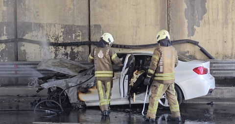 Mert ORDU- Hiba HAKBİLİR/İSTANBUL,(DHA)- ATAŞEHİR'de seyir halindeki bir otomobilde yangın çıktı. İtfaiye ekiplerinin müdahalesiyle yangın kısa sürede söndürülürken otomobil kullanılamaz hale geldi. Yangın, saat 16.00 sıralarında Site Mahallesi Çamlıca Bağlantı Yolu'nda seyir halindeki otomobilde çıktı. 34 MMC 653 plakalı otomobil, henüz belirlenemeyen bir nedenle yanmaya başladı. Alevlerin kısa sürede büyümesiyle çevredeki vatandaşların ihbarı üzerine olay yerine itfaiye, polis ve sağlık ekipleri sevk edildi. Olay yerine gelen itfaiye ekipleri, müdahale ettikleri yangını kısa sürede kontrol altına aldı. Otomobilin kullanılamaz hale geldiği yangında polis ekipleri çevrede güvenlik önlemi alarak bağlantı yolunu trafiğe kapattı. Yolda uzun araç kuyrukları oluştu. Ölen ya da yaralananın olmadığı yangının çıkış nedeniyle ilgili inceleme başlatıldı.(DHA)