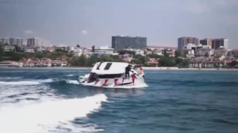 Uğur Samet AVCI/İSTANBUL,(DHA) - SİLİVRİ'de 1 Temmuz Denizcilik ve Kabotaj Bayramı etkinliklerini takip eden gazetecileri taşıyan tekne, seyir halindeyken yan yattı. Teknedeki gazeteciler tehlike atlattı.Silivri'de 1 Temmuz Denizcilik ve Kabotaj Bayramı kutlamaları kapsamında Silivri Limanı'nda resmi tören düzenlendi. Silivri Liman Başkanlığı’nın Atatürk Anıtı'na çelenk sunumuyla başlayan program, Silivri Limanı'ndan tekneyle denize açılan protokol üyelerinin deniz şehitleri anısına suya çelenk bırakması ile sona erdi. Programı takip etmek için ayrı bir tekne ile denize açılan basın mensupları, tören sırasında tehlike atlattı. Basın mensuplarını taşıyan tekne, seyir halindeyken yan yattı. Kaptanın manevrası ile hasar görmeden düzelen teknedeki basın mensupları, yaşadıkları korkuyu kameraları ile kayda aldı.