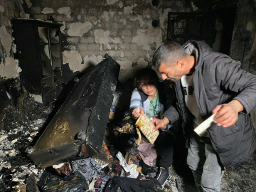 Umut IŞIK/ EDİRNE, (DHA)- EDİRNE'de, 2 katlı evde elektrik arızası nedeniyle çıkan yangında bina kullanılamaz hale gelirken, olay sonrası gelen ev sahipleri Gülşah ve Tolga Kırcan çifti, 3'ü de Spinal Musküler Atrofi (SMA) hastalığından hayatını kaybeden çocuklarına ait fotoğrafların bulunduğu flash belleği bulmak için dakikalarca hasar gören odaları aradı, sadece bir çocuğunun kendileri ile çekilen fotoğrafını bulabildi.