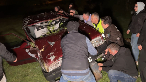 İhsan DÖRTKARDEŞ / İSTANBUL, (DHA)- AVCILAR'da sürücüsünün kontrolünü kaybettiği otomobil önce kaldırıma çıktı ardından yaklaşık 4 metre yüksekten boş araziye düştü. Otomobili, polis ve vatandaşlar iterek çekicinin yakınına götürdü. Otomobil daha sonra çekiciyle yoldan kaldırıldı. Kaza, saat 23.00 sıralarında Firuzköy Mahallesi'nde acemi şoför eğitim alanı olarak kullanılan Poyraz Caddesi'nde meydana geldi. İddiaya göre, 41 D 5713 plakalı otomobille hızla ilerleyen sürücü direksiyon hakimiyetini kaybetti. Otomobil önce kaldırıma çıktı daha sonra yaklaşık 4 metre yükseklikten boş alana düştü. Otomobil hurdaya dönerken, içinde bulunan iki kişi kendi imkanlarıyla araçtan çıkıp olay yerinden kaçtı. İhbar üzerine sevk edilen polis, itfaiye ve sağlık ekipleri bölgede inceleme yaptı. Aracın içinde başka kimsenin olmadığı belirlendi ve kaldırılması için çekici çağırıldı. Ancak otomobilin düştüğü alana çekici giremedi. Bunun üzerine ters dönen otomobil, polis ve çevredekiler tarafından itilerek çekicinin yakınına kadar götürüldü. Daha sonra çekiciyle olay yerinden kaldırıldı. Olayla ilgili soruşturma sürüyor.