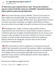 Ruken KADIOĞLU/ANKARA, (DHA)- SAĞLIK Bakanlığı, 25 yaş altı kadınların yalnızca evliyse jinekoloji randevusu alabildiği iddialarına ilişkin, Merkezi Hekim Randevu Sistemi'nin (MHRS) medeni duruma göre herhangi bir kısıtlama içermediğini açıkladı.Bakanlığın 'Sağlıklı Çözüm' adlı sosyal medya hesabından yapılan açıklamada, "Bazı basın yayın organlarında yer alan 25 yaş altı kadınların yalnızca evliyse jinekoloji randevusu alabildiği yönündeki haberlere ilişkin açıklama yapma gereği doğmuştur. Merkezi Hekim Randevu Sistemi, Türkiye Cumhuriyeti'nin dijital sağlık alanında geliştirdiği, tüm vatandaşlara eşit ve kesintisiz erişim sunan ulusal bir projedir. MHRS, hiçbir ayrım gözetmeksizin hizmet vermekte olup; kadın hastalıkları ve doğum polikliniklerine randevu alımında medeni duruma bağlı herhangi bir kısıtlama söz konusu değildir. Vatandaşlarımızın, doğru ve ihtiyaca uygun şekilde randevu oluşturabilmesi için hastanelerimiz oluşturdukları muayene odalarının niteliklerine göre bazı ek bilgiler ekleyebilmektedirler. Bu her branş ve her muayene odası için geçerli bir durumdur. Nitekim her branşın muayene koşulları ve tetkik süreçleri farklılık göstermektedir. Bu uygulama, gelişmiş ülkelerde de olduğu gibi, hizmetin daha verimli ve etkili sunulmasını amaçlamaktadır. MHRS sisteminde yer alan bu uygulama, bir kısıtlama ya da kural değildir. Bazı hastanelerin sistemlerinde açıklayıcı bilgiler, vatandaşların doğru polikliniğe yönlendirilmesini sağlamak amacıyla yer almaktadır. Bu tür ek bilgiler yalnızca jinekolojiye özgü değil, birçok branş için de geçerlidir. Amaç; hastanın hekimle görüşme sürecini daha sağlıklı ve hazırlıklı hale getirmektir" denildi. (DHA)