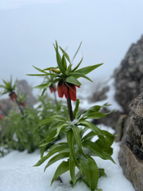 Akif ÖZALP/SİİRT, (DHA)- SİİRT’in Şirvan ilçesinde doğasever Nurcan Surgünvenç, 7 kilometre yolu 2 saatte yürüyerek çıktığı 1500 rakımlı yaylada açan kar altındaki ters laleleri görüntüledi.Şirvan ilçesine bağlı 1500 rakımlı Bacavan Yaylası’nda yetişen, ‘hüznün çiçeği’ olarak bilinen ve koparmanın 244 bin 315 TL cezası bulunan endemik türdeki ters laleler, çiçek açtı. Laleler, nisan karı ile buluşunca da ortaya güzel görüntüler çıktı. Doğasever Nurcan Surgünvenç, 7 kilometrelik patika yolu 2 saatte yürüyerek, kar altındaki ters laleleri görüntüledi. Yaylanın yüksek kesimlerine vardığında kar yağışına da yakalanan Surgünvenç, ters laleleri gördüğü için çok mutlu olduğunu söyledi. (DHA)