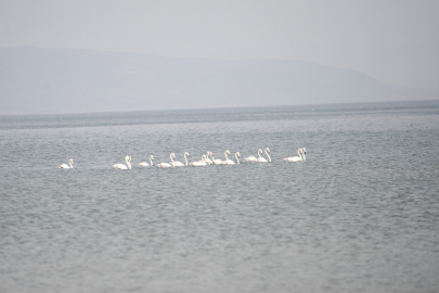 Göç yolundaki flamingolar, İznik Gölü'nde konakladı