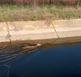 Sulama kanalına düşen karaca kurtarıldı