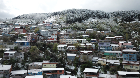 Uludağ'ın eteklerindeki mahallelerde rengarenk evler beyaz örtüyle kaplandı
