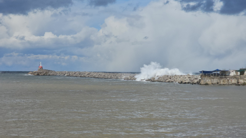 Ali Sencer ARSLAN-Cem SÜRMENELİ/ZONGULDAK, (DHA)- ZONGULDAK’ta yağmur yağışı ve rüzgar etkili olurken, boyu 8 metreyi aşan dalgalar oluştu. Dalgalar zaman zaman mendireği aşarak liman içine ulaştı.Kentte, meteorolojik uyarıların ardından yağışlı ve soğuk hava etkisini gösterdi. Kent merkezinde boyu 8 metreyi aşan dalgalar kıyı hattına ulaştı. Kayalara çarparak dalgaların patlaması görüntülendi. Dalgalar zaman zaman Zonguldak Limanı’nın mendireğini aşarak liman içine düştü. Alaplı ilçesinde de büyük dalgalar oluşurken belediye ekipleri sahil hattını inceleyerek hasar denetimi yaptı. (DHA)